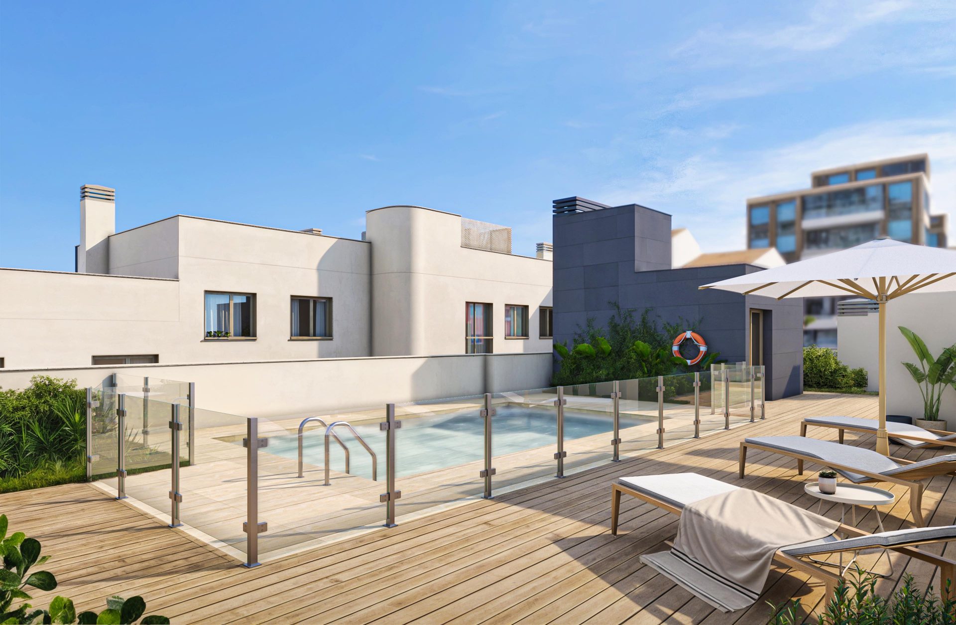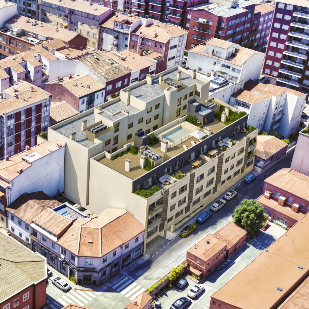 Urbanización de viviendas de 1, 2, 3 y 4 dormitorios con garaje, trastero, piscina y zonas comunes.