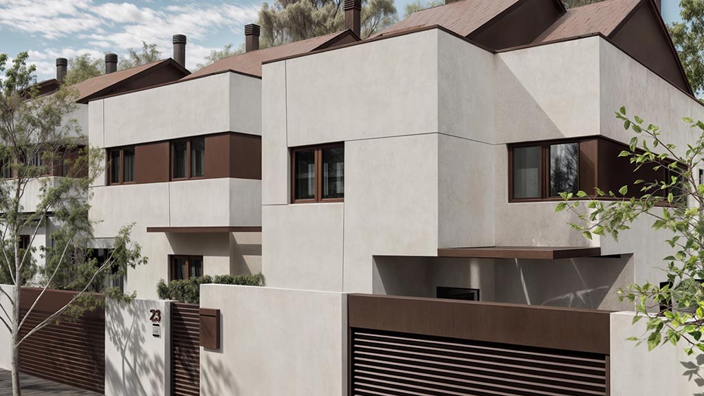 Thera Norte es la continuación de los dos proyectos residenciales ya en ejecución en Mejorada del Campo: Thera y Thera Sur. El provecto se trata de un conjunto residencial d e 25 viviendas unifamiliares de 4 a 5 dormitorios, con jardines privativos y espacio para albergar dos plazas de garaje.