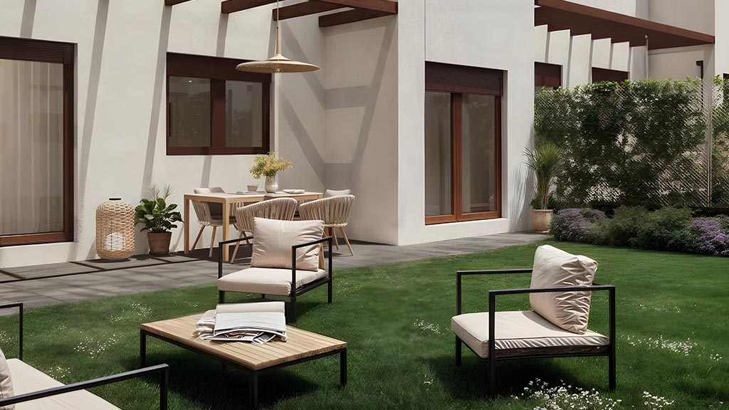 Todas las viviendas cuentan con jardines privativos y espacio de aparcamiento para dos coches con acceso directo desde la calle.